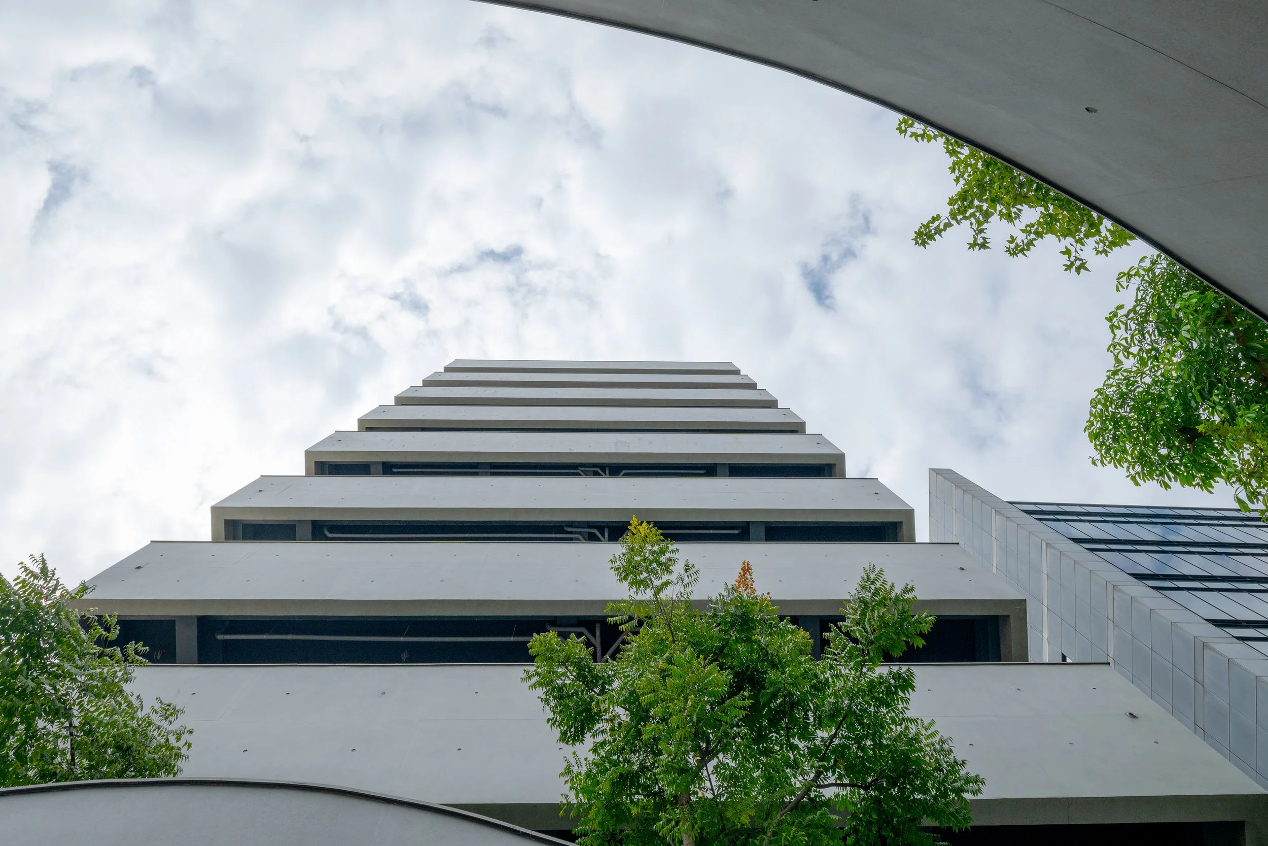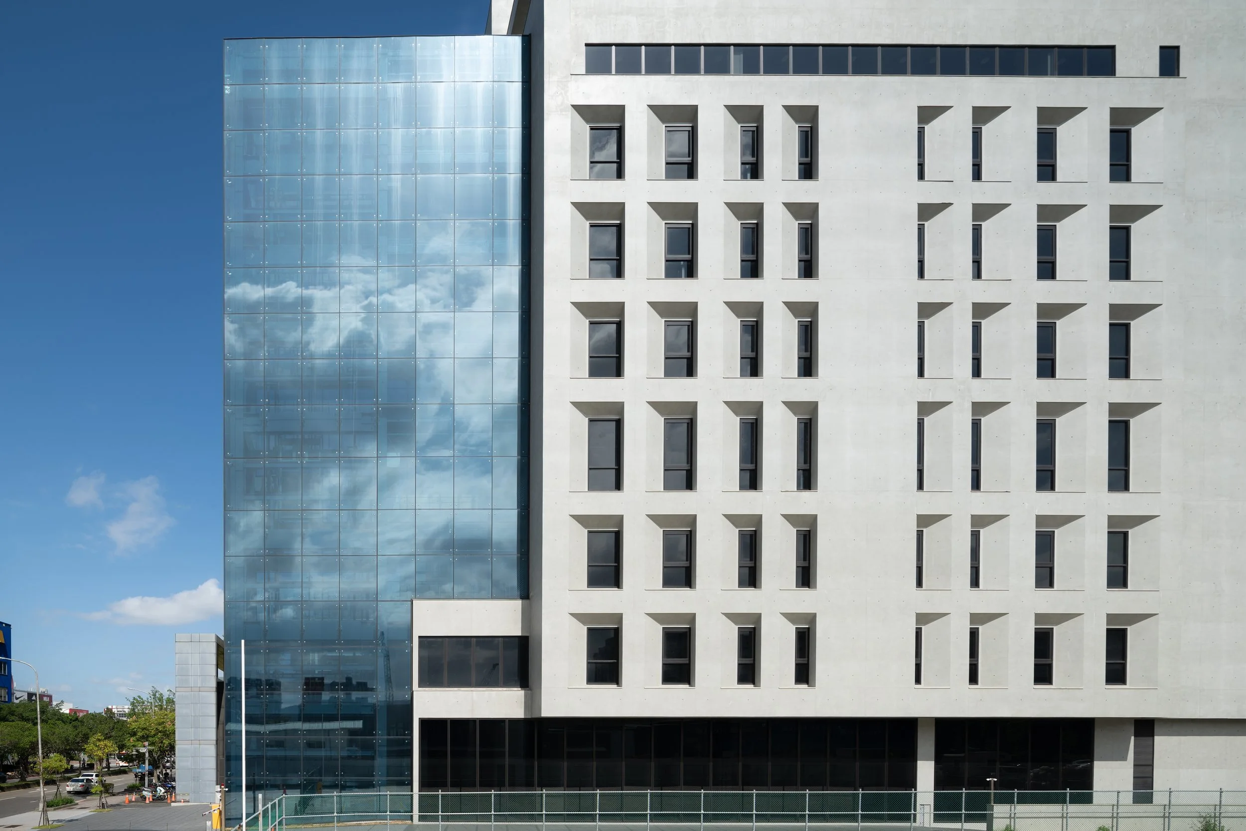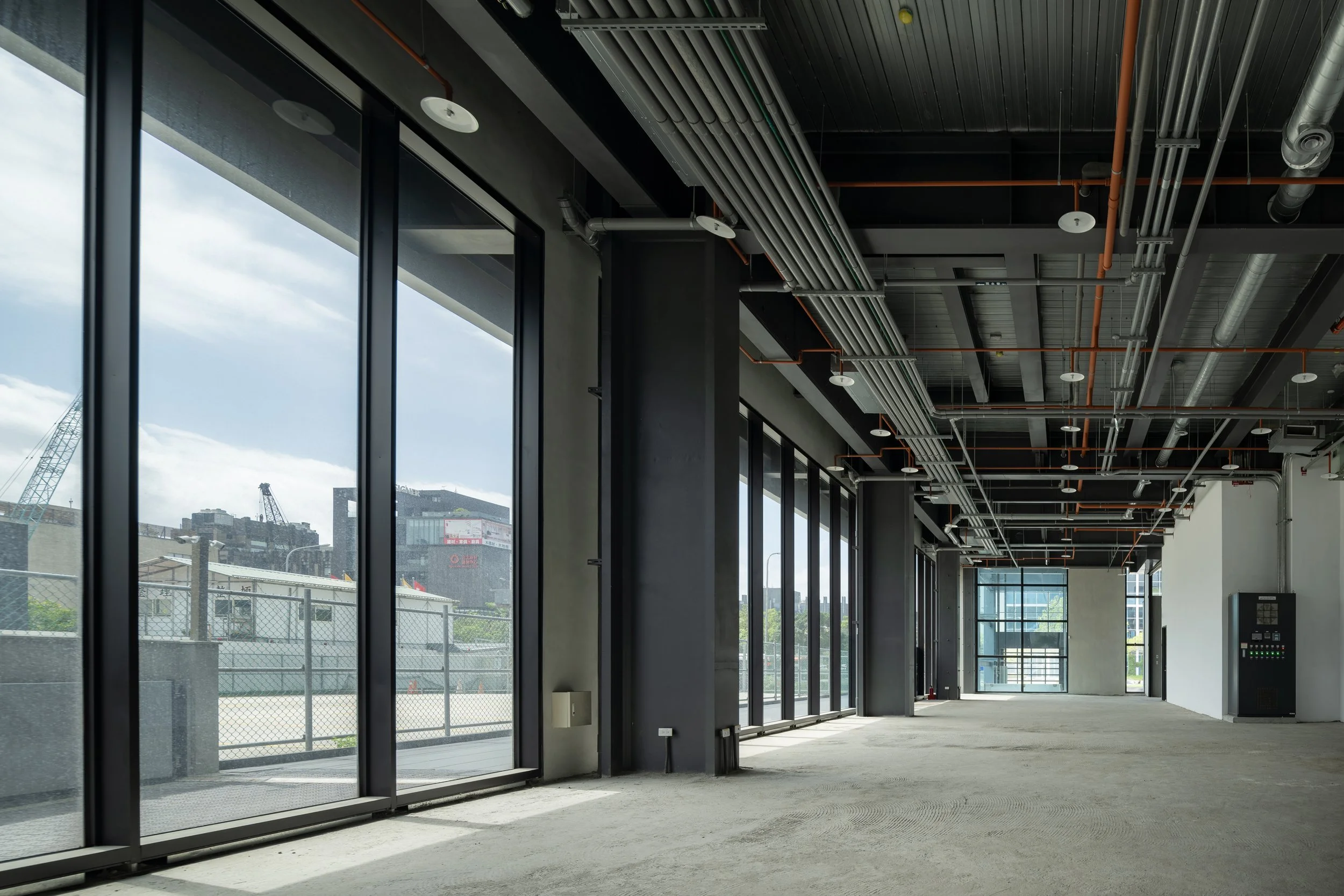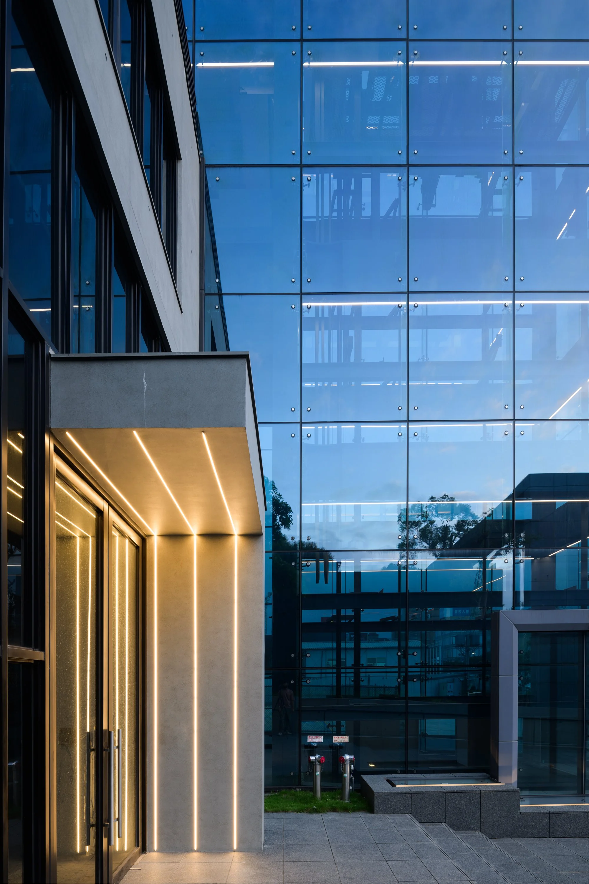 The building was designed to be understated in order to offset the HubAuto supercars that will be featured and transport through the car elevator in front. The shifting windows were inspired by the dynamic movement of auto racing.